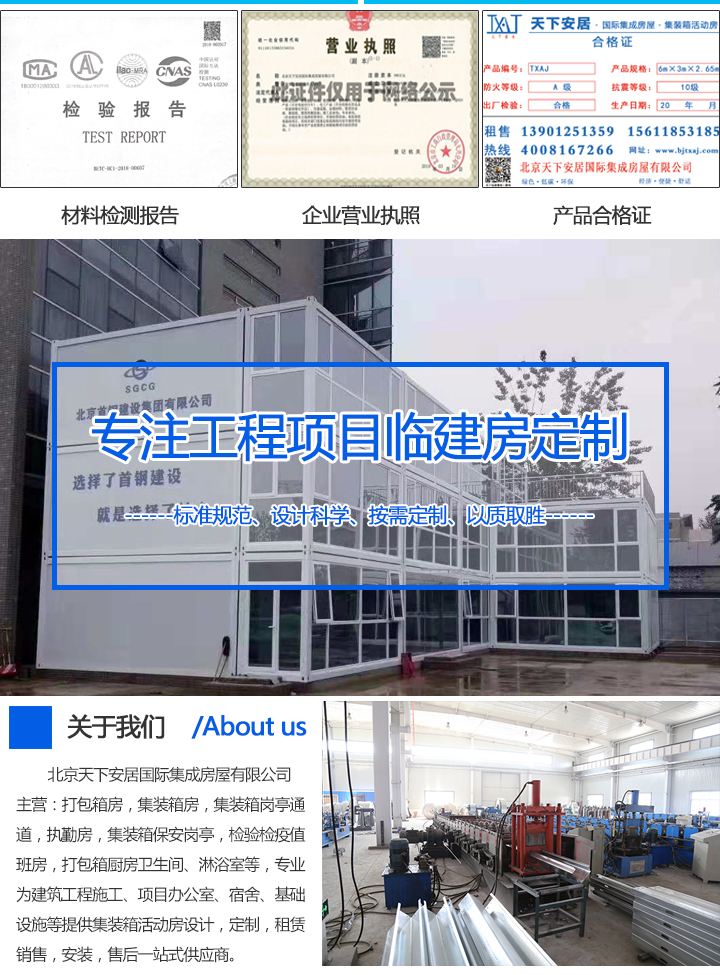 北京(jing)天下安居集(ji)成房(fang)屋提供豪(hao)華打包(bao)箱房(fang)定(ding)制,為工程提供辦公豪(hao)華打包(bao)箱房(fang)定(ding)制服務。